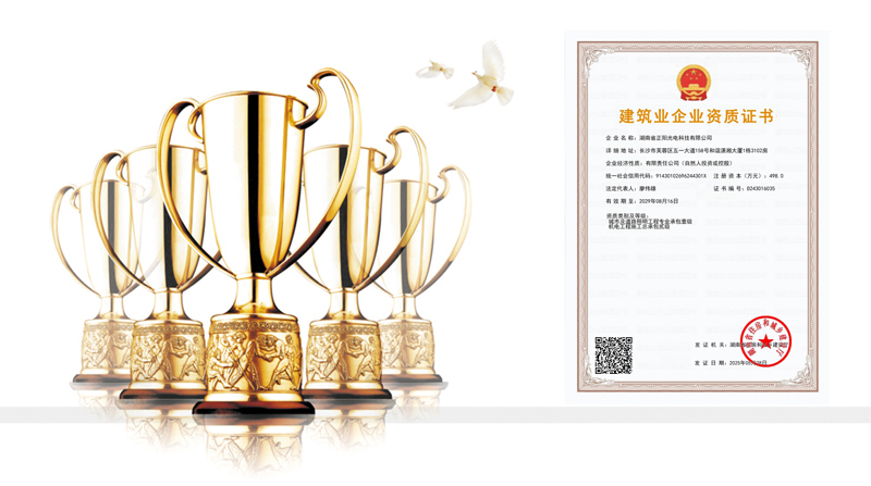 湖南省正陽光電科技有限公司是一家從事亮化工程及大型燈光藝術(shù)的設(shè)計、制作、安裝和維護于一體的專業(yè)化公司。公司資質(zhì)齊全、管理嚴謹、技術(shù)先進、實力雄厚,取得了城市及道路照明工程專業(yè)承包壹級資質(zhì)、照明工程設(shè)計專項甲級資質(zhì)、機電工程施工總承包貳級資質(zhì)、施工勞務(wù)等資質(zhì)、國家高新技術(shù)企業(yè)、國家“重質(zhì)量·守誠信”示范企業(yè)。